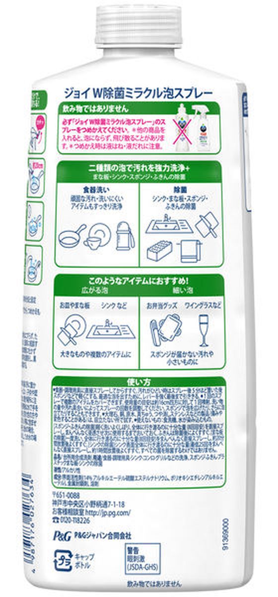 P&G W除菌ジョイ ミラクル泡スプレー 緑茶 詰替 3回分 1本(ご注文単位1本)【直送品】