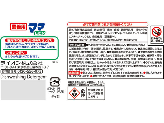 ライオンハイジーン 業務用 ママレモン 4L 1個(ご注文単位1個)【直送品】