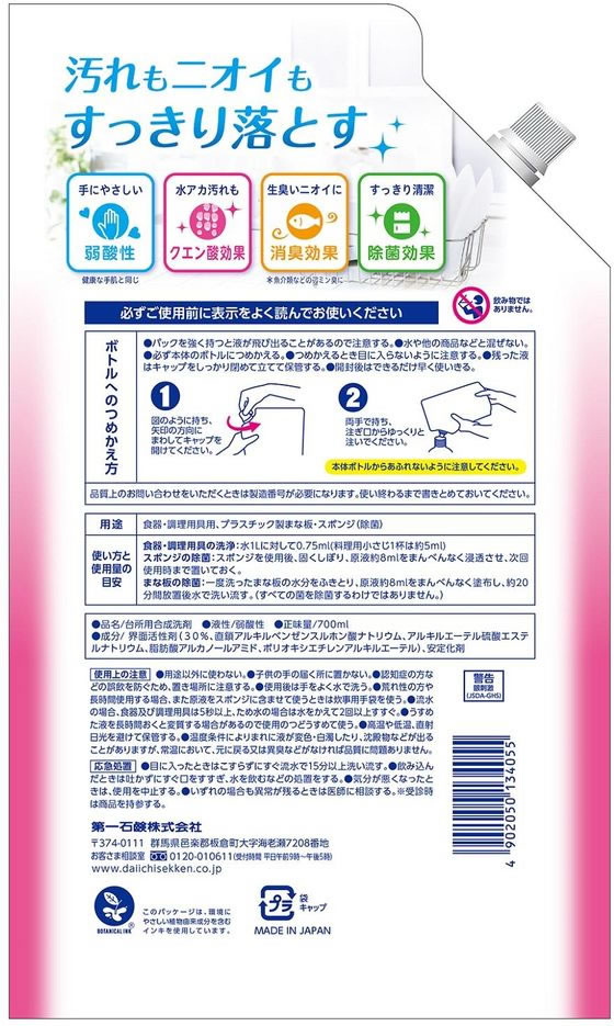 第一石鹸 キッチンクラブフレッシュ弱酸性ピンクグレープフルーツ替 700ml 1個(ご注文単位1個)【直送品】