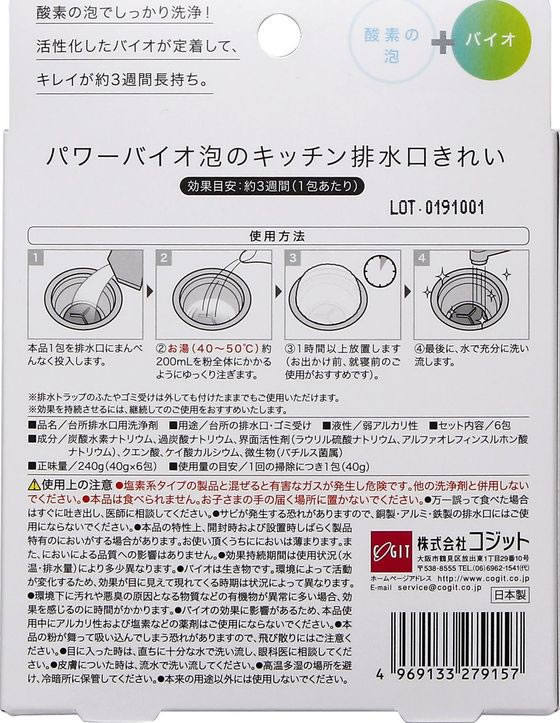 コジット パワーバイオ 泡のキッチン排水口きれい 6包 20162 1箱(ご注文単位1箱)【直送品】