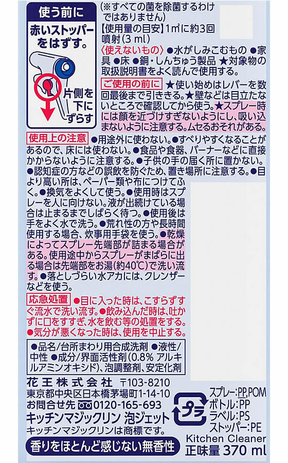 KAO キッチンマジックリン 泡ジェット 本体 370ml 1本(ご注文単位1本)【直送品】
