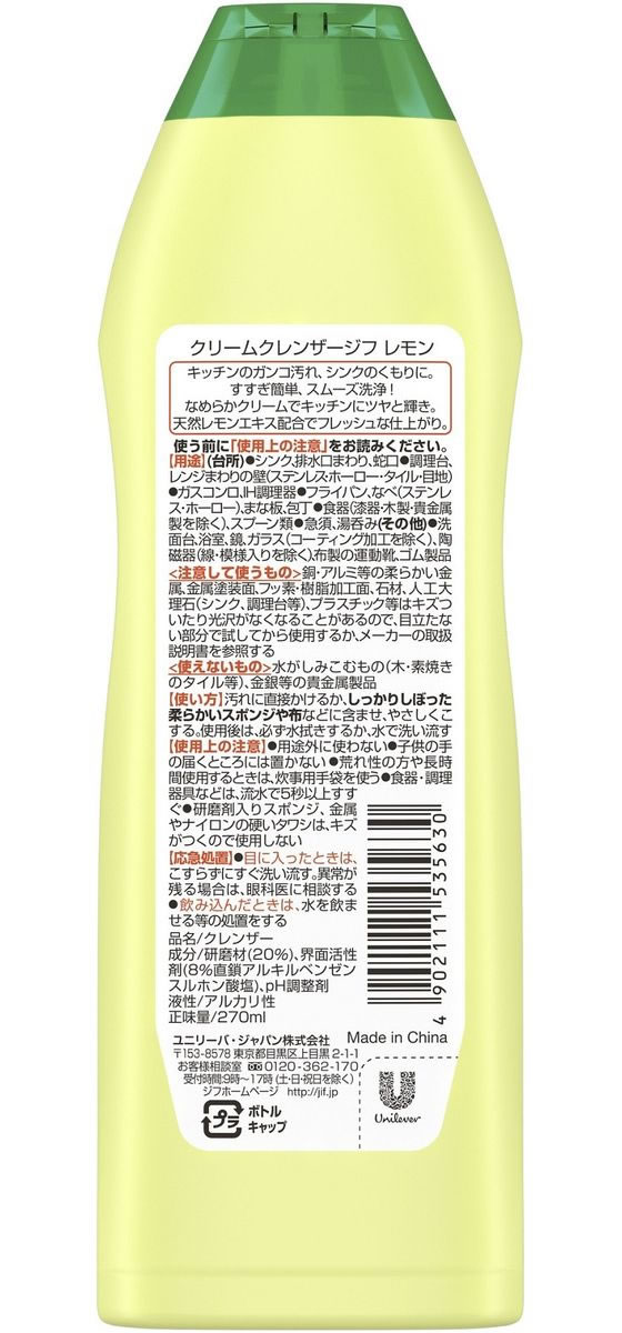 ユニリーバ ジフ クリームタイプ レモン 270ml 1本(ご注文単位1本)【直送品】