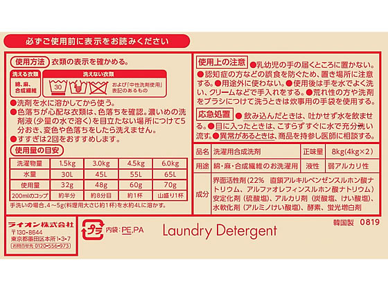 ライオンハイジーン 無リン トップ 4kg×2 1箱(ご注文単位1箱)【直送品】