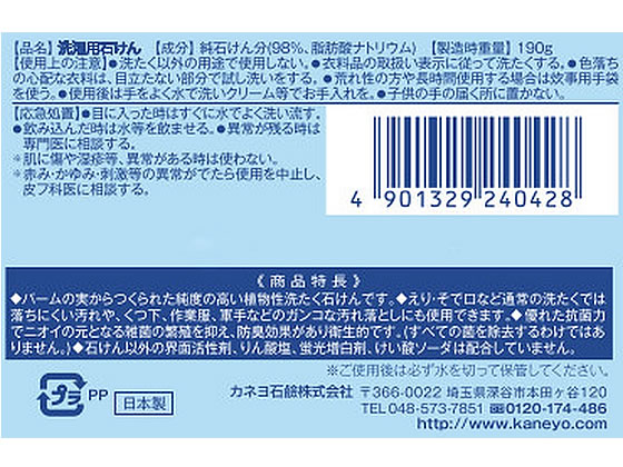 カネヨ石鹸 カネヨ洗たくせっけん 190g 1個(ご注文単位1個)【直送品】