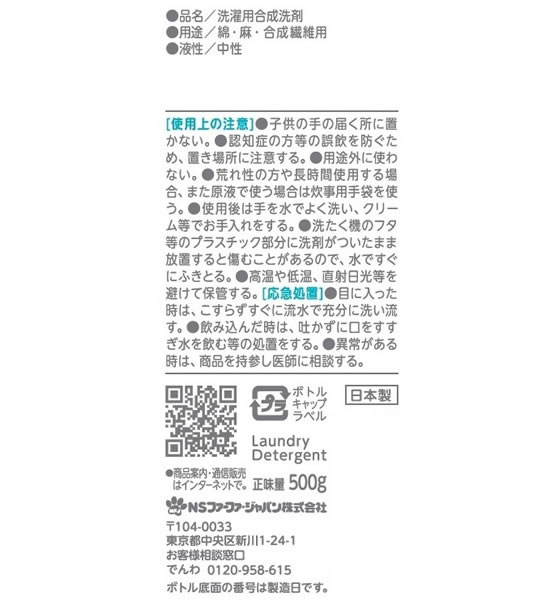 NSファーファJ ファーファ フリー&超コン液体洗剤無香料 本体500g 1個(ご注文単位1個)【直送品】