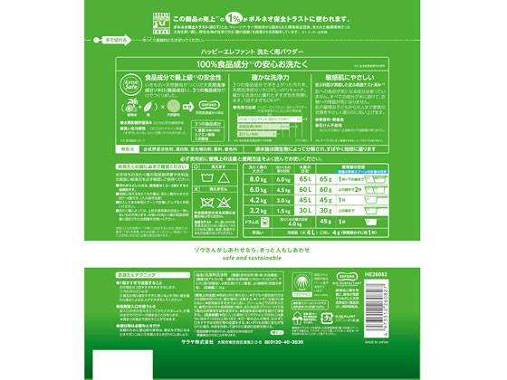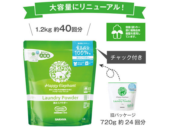 サラヤ ハッピーエレファント 洗たくパウダー 1.2kg 1個(ご注文単位1個)【直送品】
