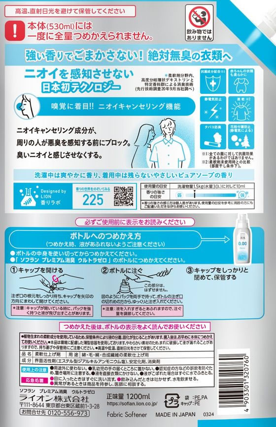 ライオン ソフラン プレミアム消臭 ウルトラゼロ 詰替特大 1200ml 1個(ご注文単位1個)【直送品】