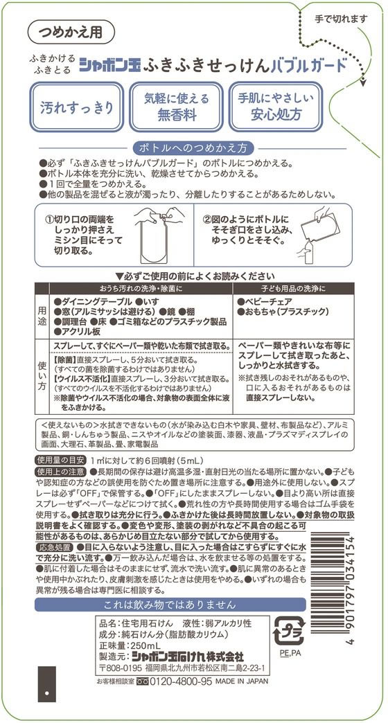 シャボン玉販売 ふきふきせっけんバブルガード 詰替 250ml 1パック(ご注文単位1パック)【直送品】