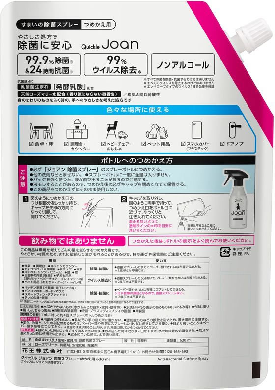 KAO クイックルJoan 除菌スプレー つめかえ用 630ml 1個(ご注文単位1個)【直送品】