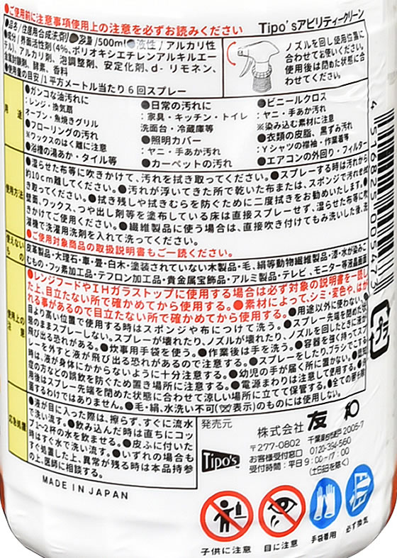 友和 ティポス アビリティークリーン 500ML 353177 1個(ご注文単位1個)【直送品】