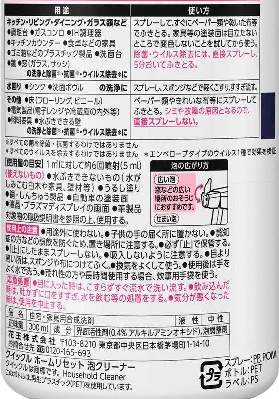 KAO クイックルホームリセット 泡クリーナー 本体 300ml 1本(ご注文単位1本)【直送品】