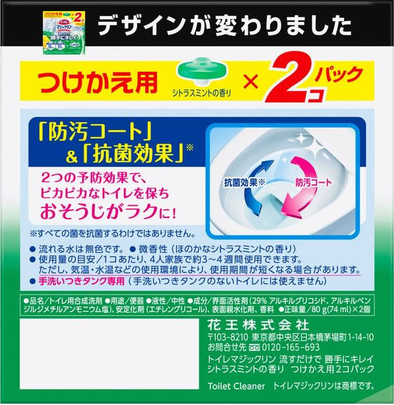 KAO トイレマジックリン流すだけで勝手にキレイ シトラスミント替 2コパック 1箱(ご注文単位1箱)【直送品】