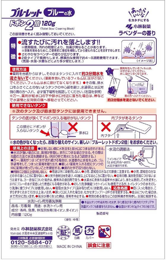 小林製薬 ブルーレット ドボン2倍 ラベンダーの香り 120g 1個(ご注文単位1個)【直送品】