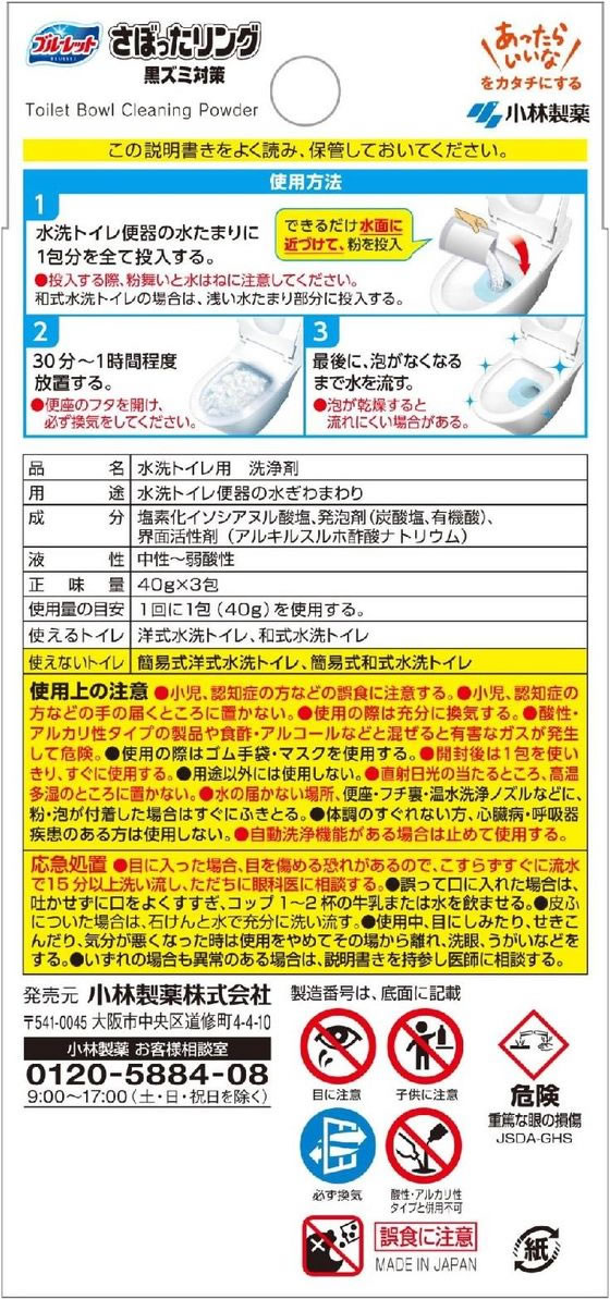 小林製薬 ブルーレットさぼったリング 40g×3包 1個(ご注文単位1個)【直送品】