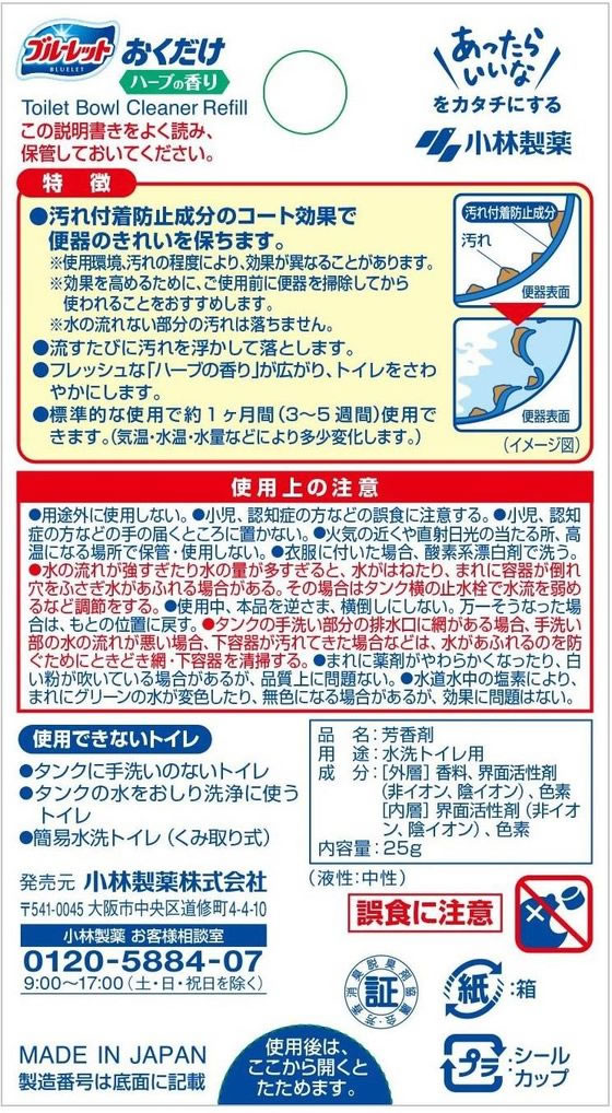 小林製薬 ブルーレットおくだけ つめ替 ハーブの香り 25g 1個(ご注文単位1個)【直送品】