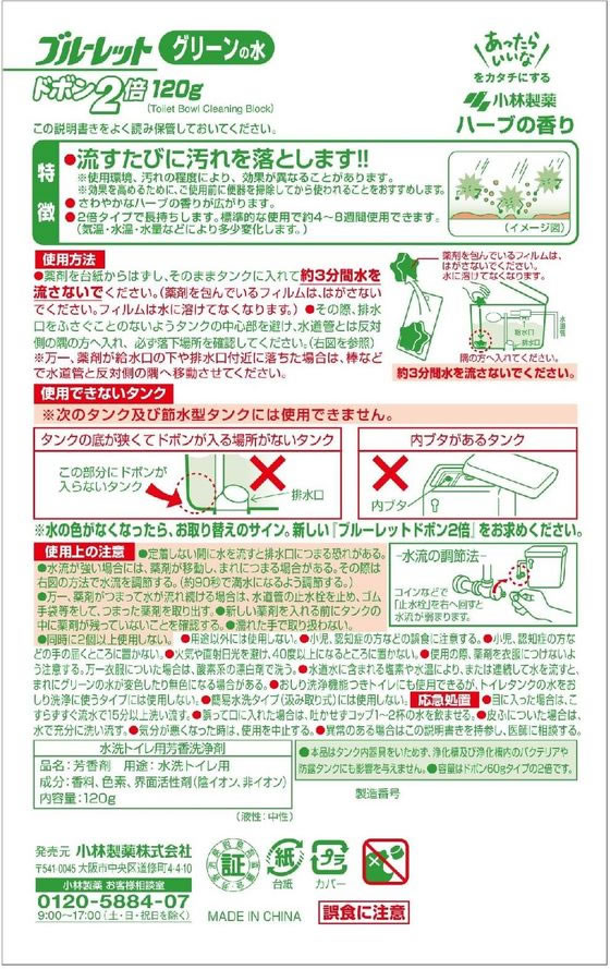 小林製薬 ブルーレット ドボン2倍 ハーブ 120g 1個(ご注文単位1個)【直送品】