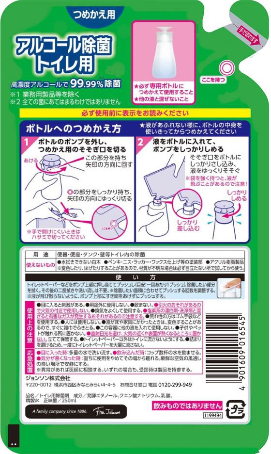 ジョンソン スクラビングバブル アルコール除菌トイレ用 詰替用 250ml 1個(ご注文単位1個)【直送品】