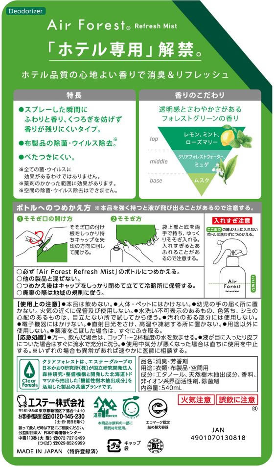 エステー AirForest リフレッシュミスト 替 ForestGreen 1パック(ご注文単位1パック)【直送品】