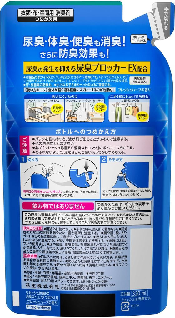 KAO リセッシュ 除菌EX 消臭ストロング 詰替用 320ml 1本(ご注文単位1本)【直送品】