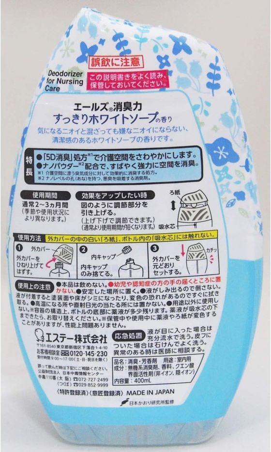 エステー エールズ 介護家庭用 消臭力 すっきりホワイトソープ400ml 1個(ご注文単位1個)【直送品】