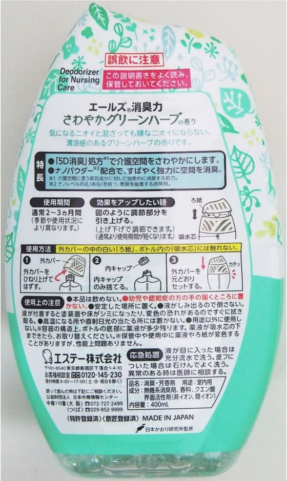 エステー エールズ介護家庭用 消臭力 さわやかグリーンハーブ400ml 1個(ご注文単位1個)【直送品】
