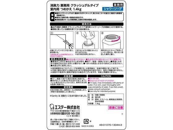 エステー 消臭力業務用クラッシュゲル 室内 詰替1.4kg シャワーソープ 1個(ご注文単位1個)【直送品】