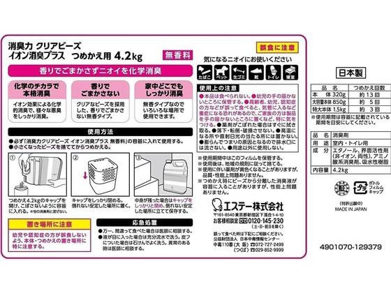 エステー 消臭力クリアビーズ イオン消臭プラス 詰替 無香料 4.2kg 1本(ご注文単位1本)【直送品】
