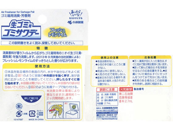 小林製薬 生ゴミ用ゴミサワデー フレッシュレモンライム 2.7ml 1個(ご注文単位1個)【直送品】