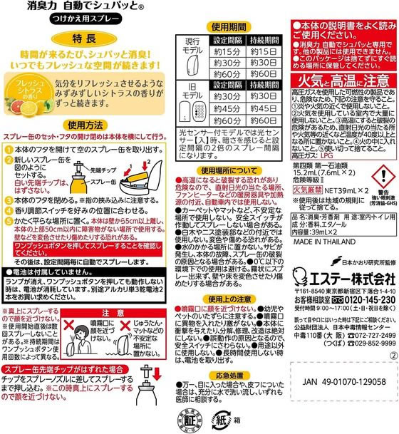 エステー 消臭力 自動でシュパッと 替 2個セット フレッシュシトラスの香 1箱(ご注文単位1箱)【直送品】