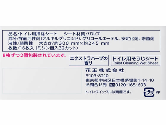 KAO トイレクイックル ストロング エクストラハーブの香り 詰替 16枚入 1パック(ご注文単位1パック)【直送品】