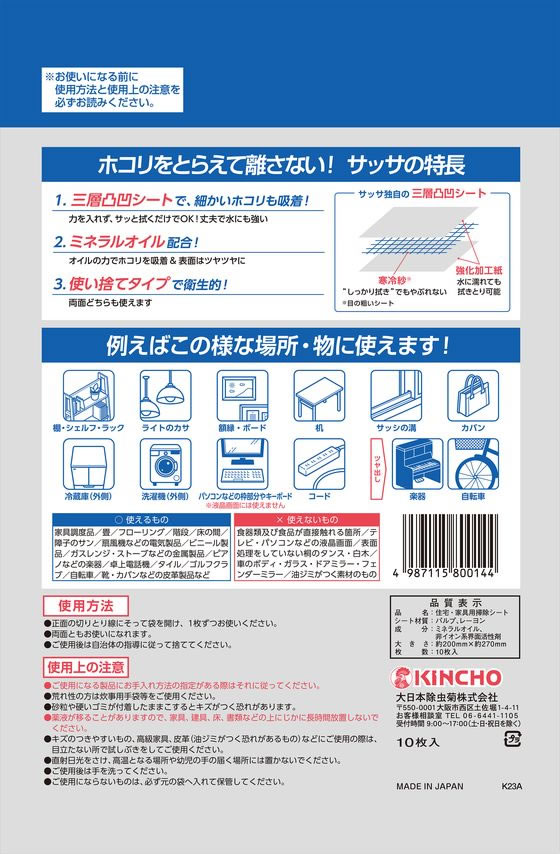 大日本除虫菊 お掃除シート サッサV ドライタイプ 10枚 1個(ご注文単位1個)【直送品】