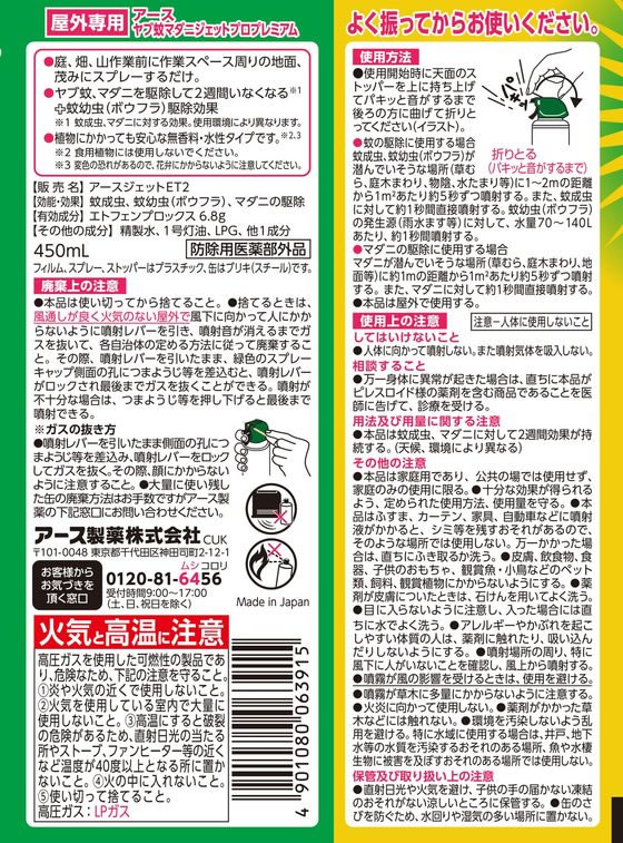 アース製薬 ヤブ蚊ジェットプロプレミアム 450ml 1本(ご注文単位1本)【直送品】