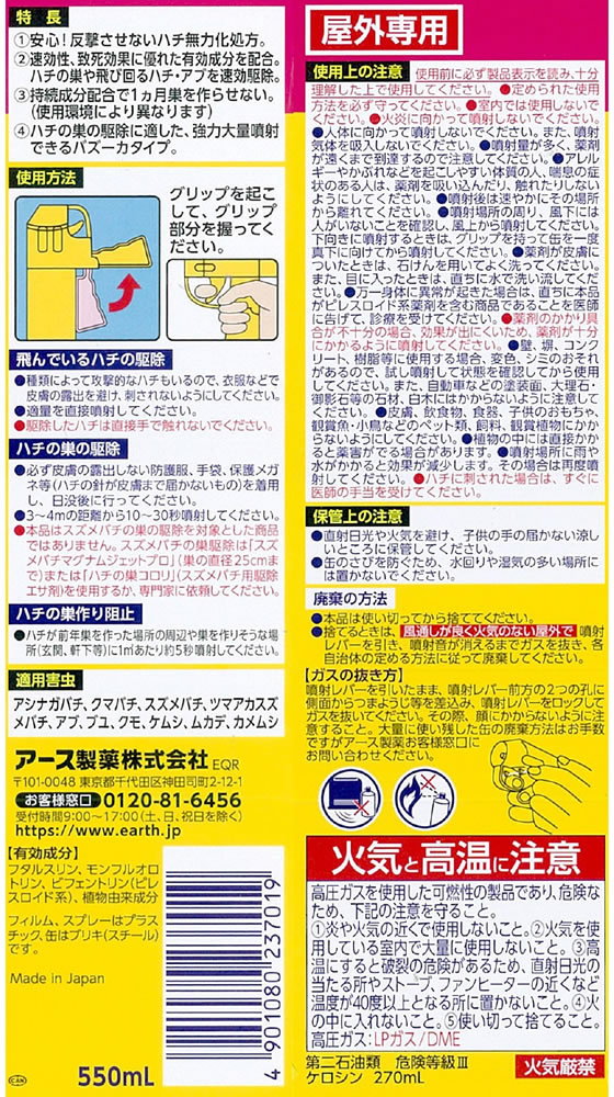 アース製薬 ハチアブマグナムジェット 550ml 1本(ご注文単位1本)【直送品】