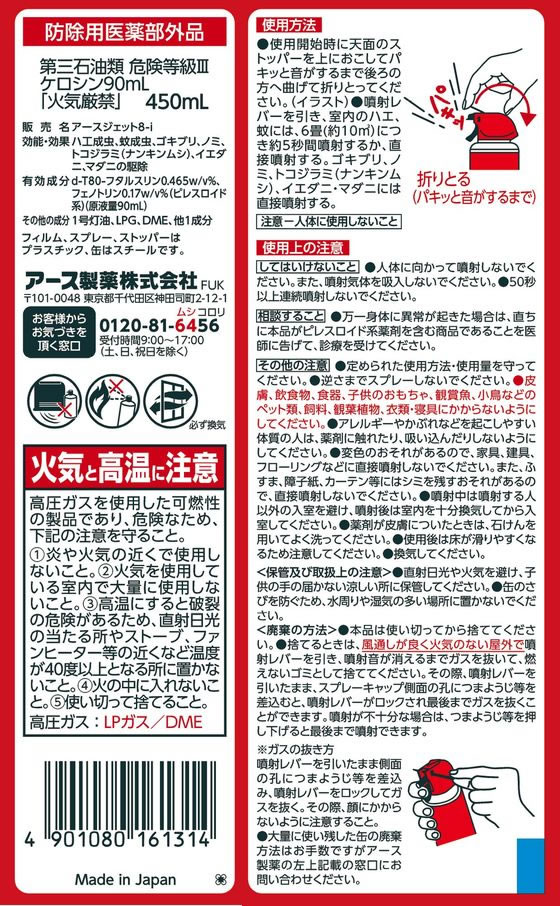 アース製薬 アースジェット450ml 1本(ご注文単位1本)【直送品】