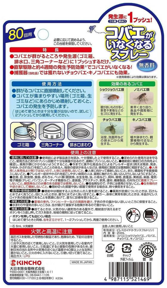 金鳥 コバエがいなくなるスプレー 80回 20ml 1個(ご注文単位1個)【直送品】