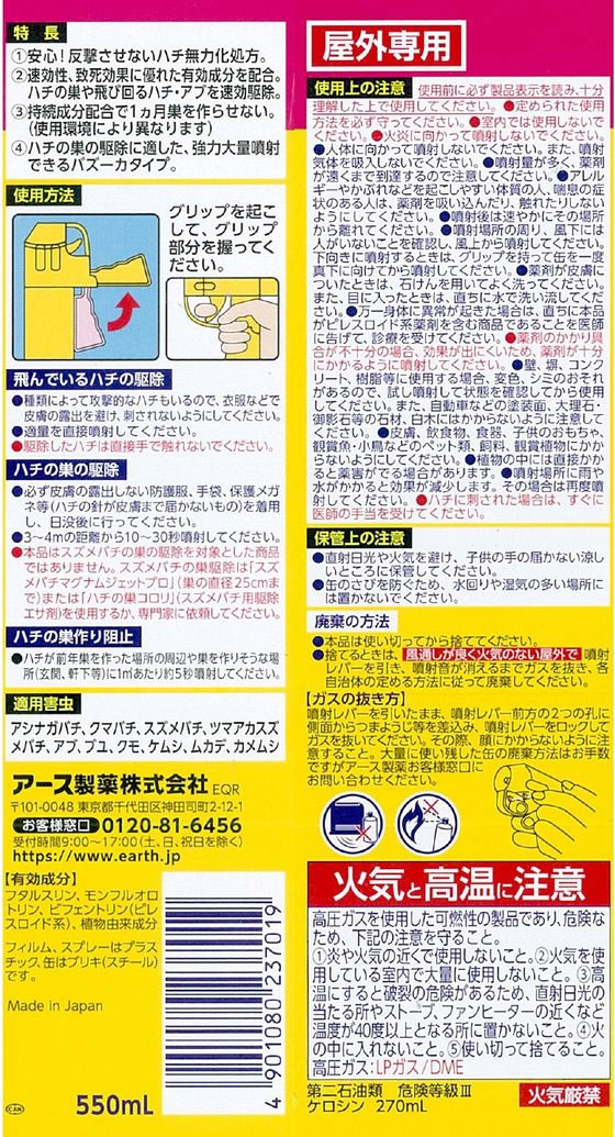 アース製薬 ハチアブマグナムジェット 550mL 5本入 1箱(ご注文単位1箱)【直送品】