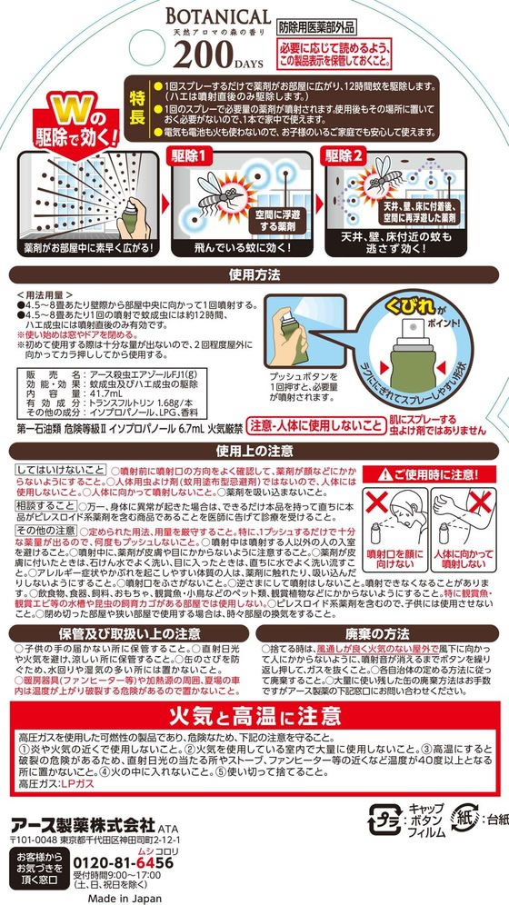 アース製薬 おすだけノーマット スプレータイプ 200日分 BOTANICAL 1個(ご注文単位1個)【直送品】