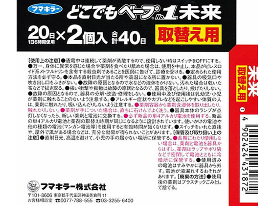 フマキラー どこでもベープNO.1未来 取替用 不快害虫用 2個 1箱(ご注文単位1箱)【直送品】