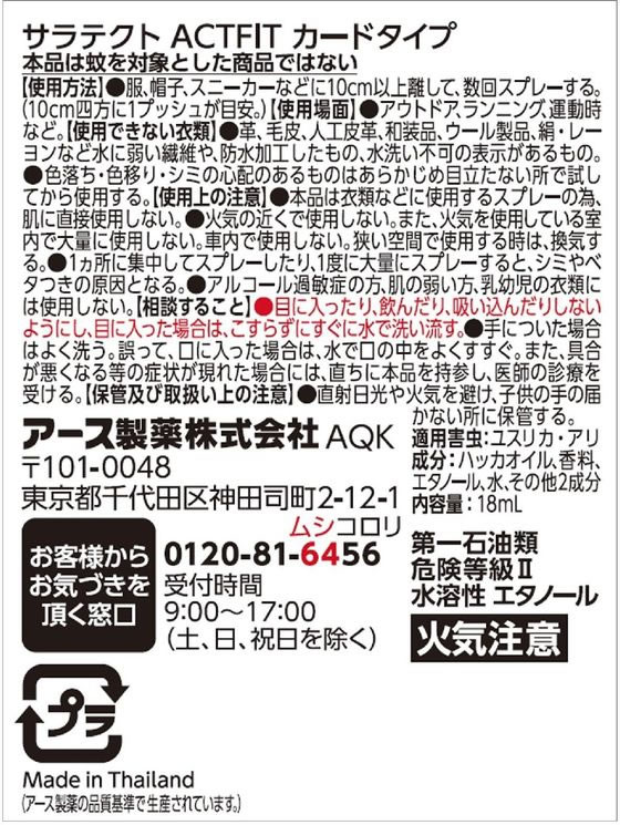 アース製薬 サラテクト ACT FIT カードタイプ 18mL 1個(ご注文単位1個)【直送品】