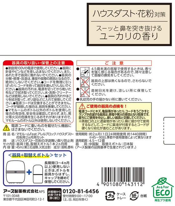 アース製薬 マモルーム ハウスダスト・花粉用 2ヵ月用セット 1セット(ご注文単位1セット)【直送品】