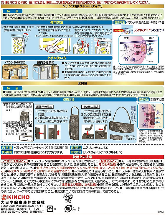 金鳥 虫コナーズ ベランダ+玄関パック 250日用 感謝パック 1セット(ご注文単位1セット)【直送品】