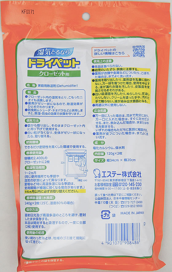エステー ドライペット クローゼット用 120g×2枚 1パック(ご注文単位1パック)【直送品】