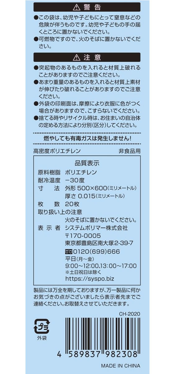 ●縦:800mm●横:650mm●厚さ:0.025mm