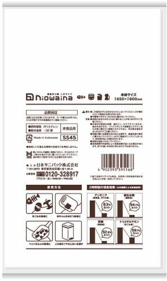 日本サニパック ニオワイナ消臭袋 白半透明 45L 10枚 375546 1袋(ご注文単位1袋)【直送品】