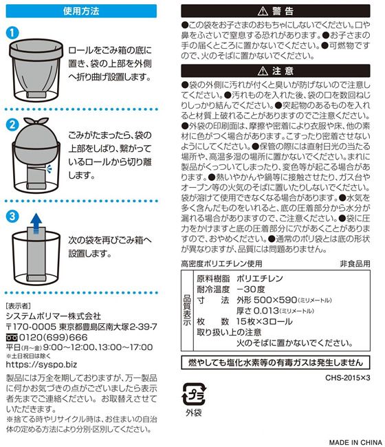 システムポリマー コンパクトロール・消臭袋20L15枚×3本 CHS-2015×3 1パック(ご注文単位1パック)【直送品】