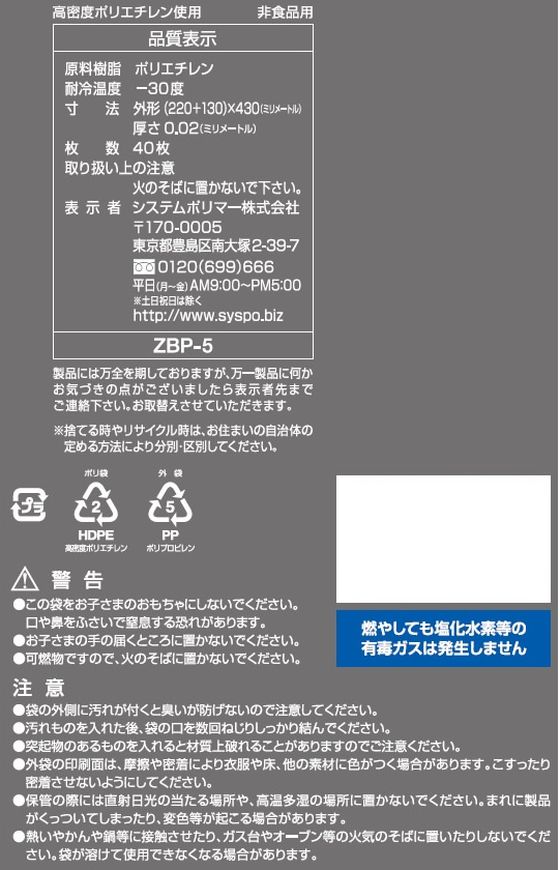 システムポリマー 手付きで便利な消臭ポリ袋Mサイズ 40枚 ZBP-5 1パック(ご注文単位1パック)【直送品】