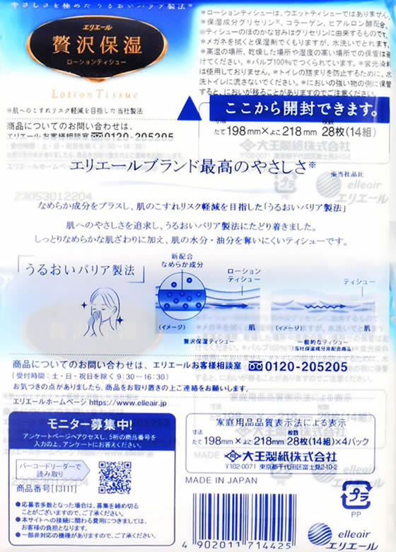 大王製紙 エリエール 贅沢保湿 ポケットティシュー 14組×4個パック 1パック(ご注文単位1パック)【直送品】