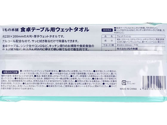 iiもの本舗 除菌もできる!食卓テーブル用ウエットタオル 70枚入 1個(ご注文単位1個)【直送品】