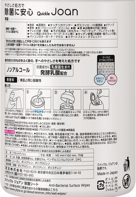 KAO クイックル Joan 除菌シート 本体 70枚 1個(ご注文単位1個)【直送品】