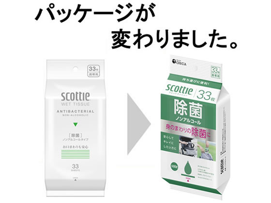 クレシア スコッティ ウェットティシュー 除菌ノンアルコールタイプ 携帯 33枚×24 1箱(ご注文単位1箱)【直送品】